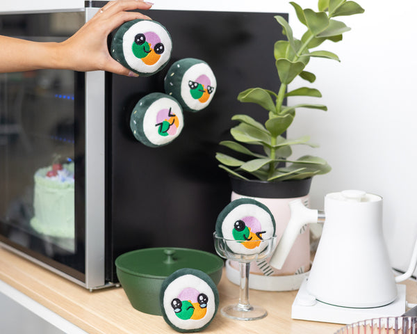 Meet our Kimbap Friends Plushie Set, a set of five adorable magnetic plushies.