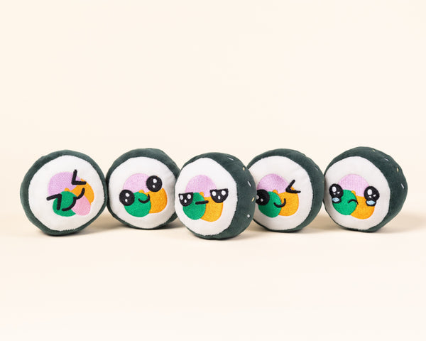 Meet our Kimbap Friends Plushie Set, a set of five adorable magnetic plushies.